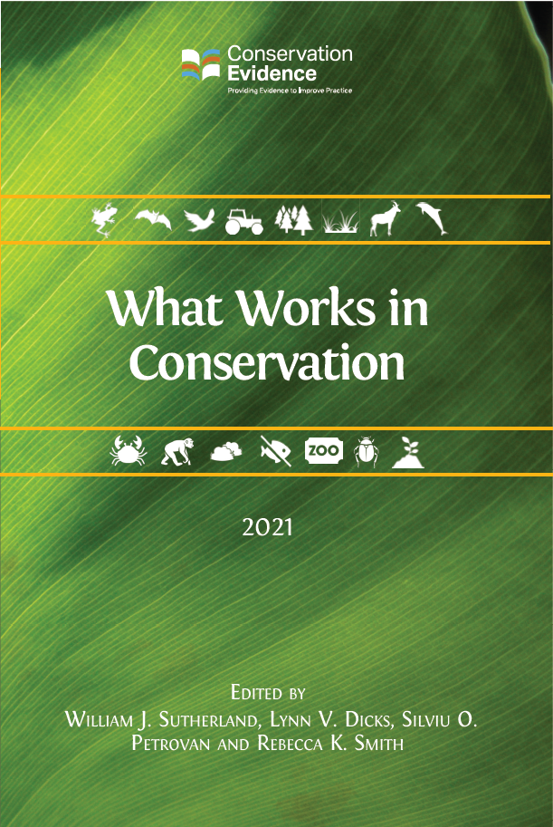 Yesterday the sixth edition of Conservation Evidence’s flagship publication, What Works in Conservation, was published. What Works provides a freely-available, comprehensive overview of the expert assessment of evidence for the effectiveness (or not) of management actions collated within Conservation Evidence synopses. It is a freely-available resource for conservation managers, practitioners and policy-makers who want to incorporate evidence into their management decisions.