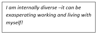 Yet if those diversity challenges were not enough, I also know there is diversity within myself that can be challenging. Occasionally I even find it exasperating to live or work with myself! There is competition between my rational thought processes and other forces that trigger freeze, flight, fight, food and sex responses that are unhelpful. I have deep human needs related to certainty that may be in tension with a need for variety. My need to belong and fit in with those about me may be at odds with a need to be a unique, distinct, autonomous individual. Then there are my values. My desire for comfortable living that conflicts with sustainability. My desire for peace and calm with other people may be at odds with speaking out against dangerous or damaging behaviour or injustices. My love of truth may hurt or offend someone I care about or rely upon to meet life needs for shelter, food or relationship.