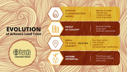 Image 3. An infographic of Ofrenda’s Land Trust model, process, and status. Graphic courtesy of Joshua Dautoff