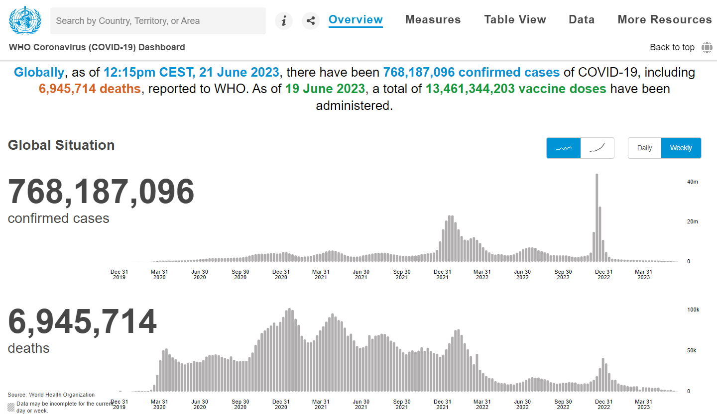 Whosoever is reading this post must have witnessed the catastrophic consequences of Covid-19 Pandemic. Following is taken from World Health Organization (WHO) Covid-19 Dashboard: