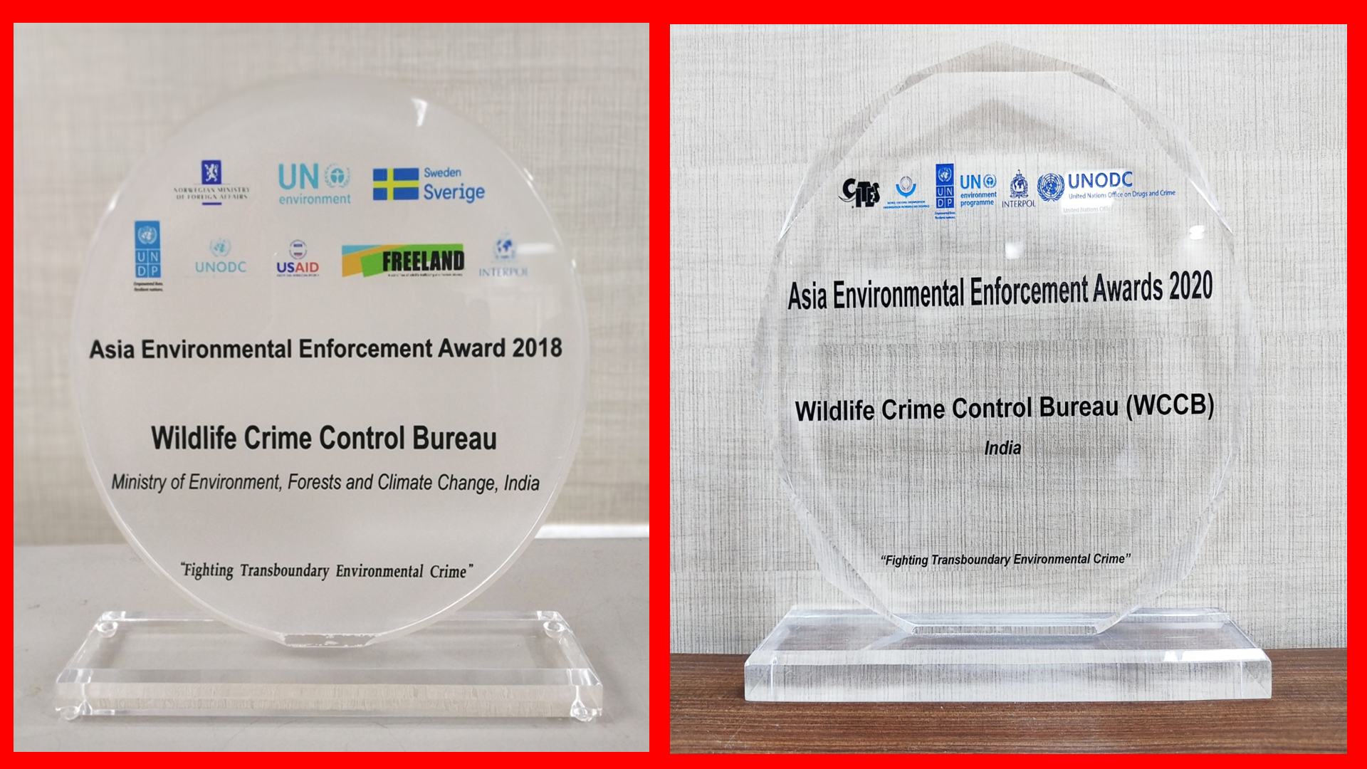 - In recognition of excellent work done by WCCB to counter the wildlife cyber crimes, WCCB has been awarded Asia Environmental Enforcement Award twice for the year 2018 and 2020.