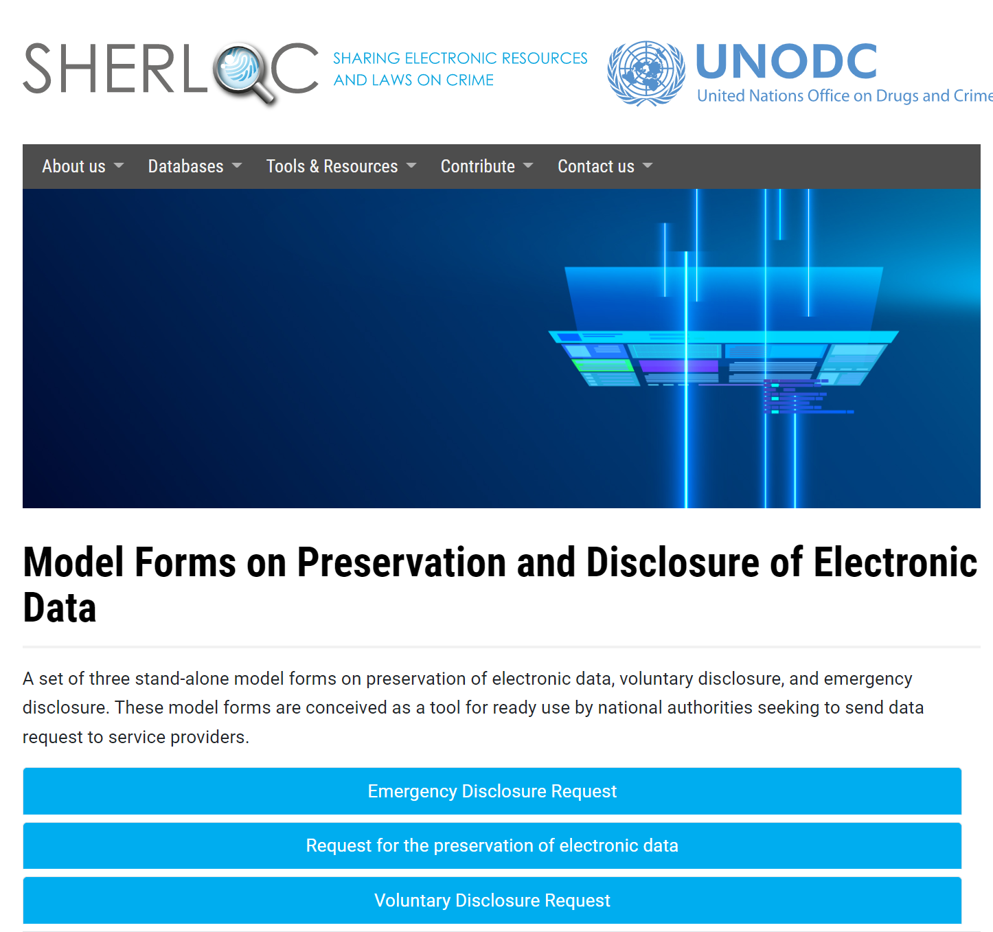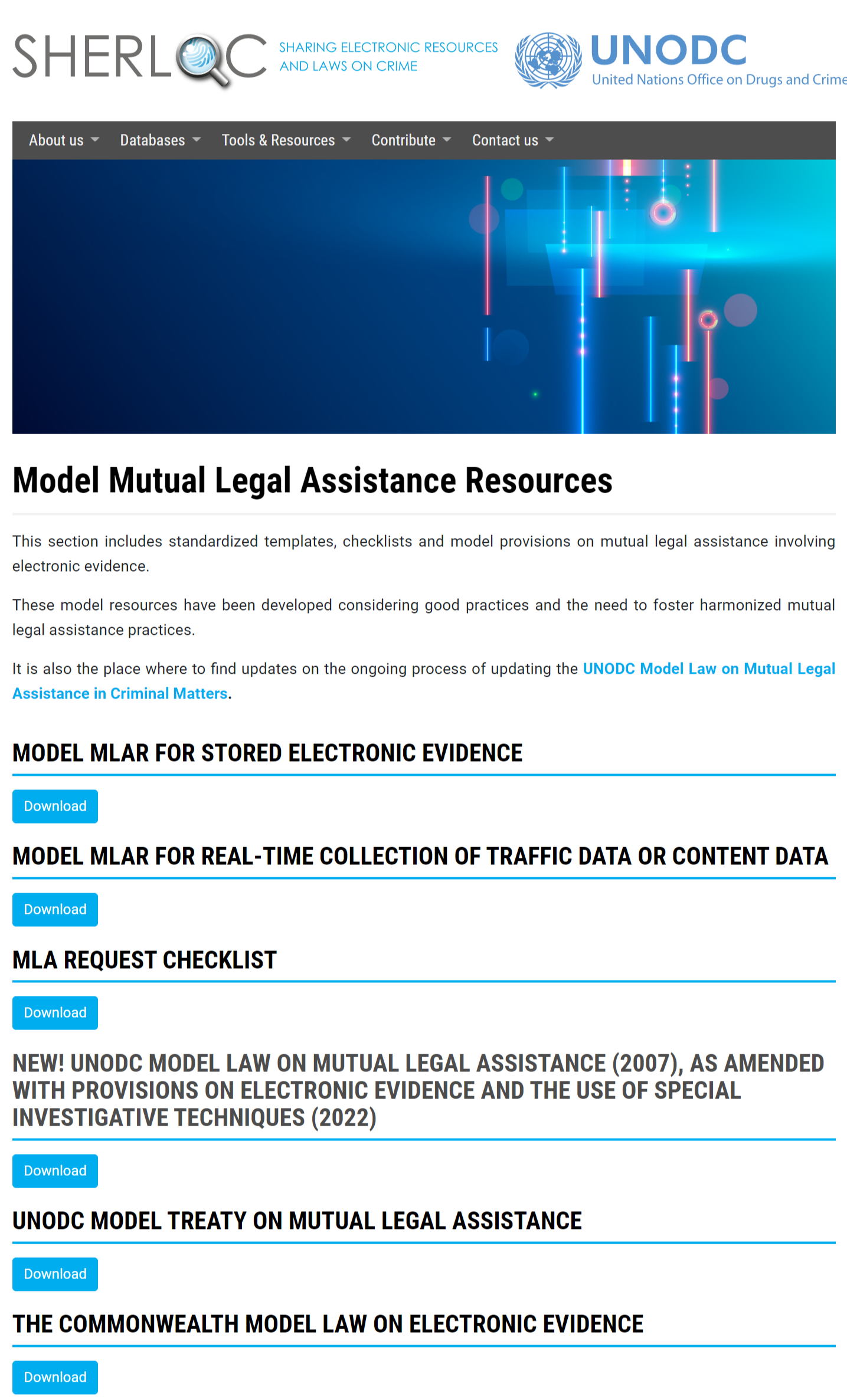 UNODC has also come out with the Model Mutual Legal Assistance Resources like “Model MLAR for Stored Electronic Evidence”, “Model MLAR For Real-Time Collection Of Traffic Data Or Content Data” “UNODC Model Law on Mutual Legal Assistance (2007) as Amended with Provisions on Electronic Evidence and the Use of Special Investigative Techniques (2022)”, UNODC Model Treaty on Mutual Legal Assistance”, “The Commonwealth Model Law on Electronic Evidence”.