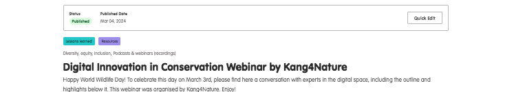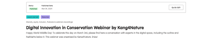 Coordinating with Your Event Team: Before you begin promoting, connect with your event team (e.g., panellists, presenters). Make sure they’re invited to WildHub (if they aren’t already members) so you can tag them in the post-event discussion and add them as contributors (e.g. to recordings). This creates engagement and advocacy after the event. Also, add them to the social media channels you’ll use to promote the event.