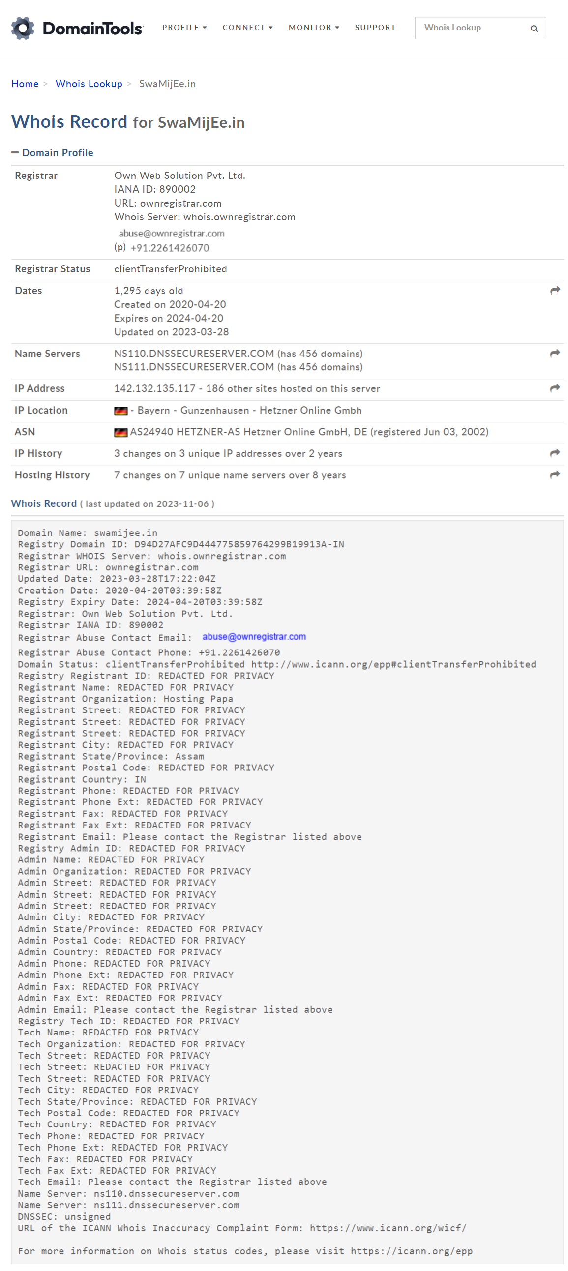 As evident from the above, many informations about the owner of this website/domain has been redacted for privacy. However many crucial informations about the Registrar, Hosting service Provider and Registrant Country are still available that can provide crucial lead into the investigation.