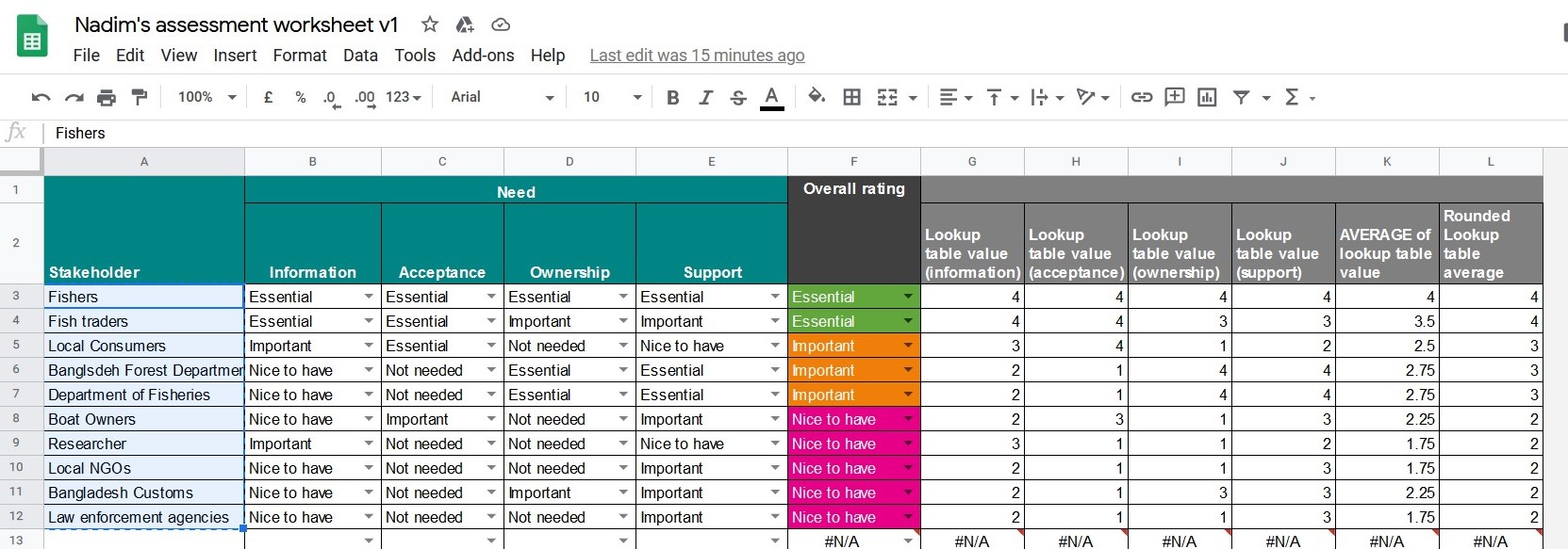 Engaging Stakeholders - ratings and roles