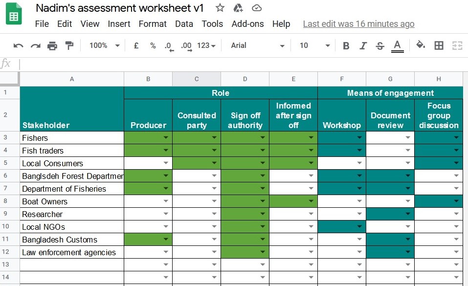 I have particularly worked on the stakeholders for Sawfish Conservation in Bangladesh. Please let me know if I missed one.