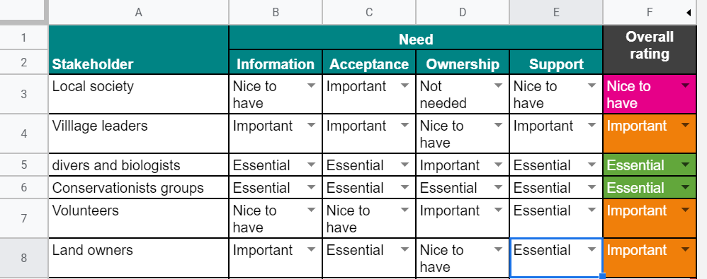 Hi guys, I worked on a conservation project in Bali, Indonesia and was responsible for rebuilding the coral reefs in an isolated area - here are my worksheets and who I believe would be required for involvement.