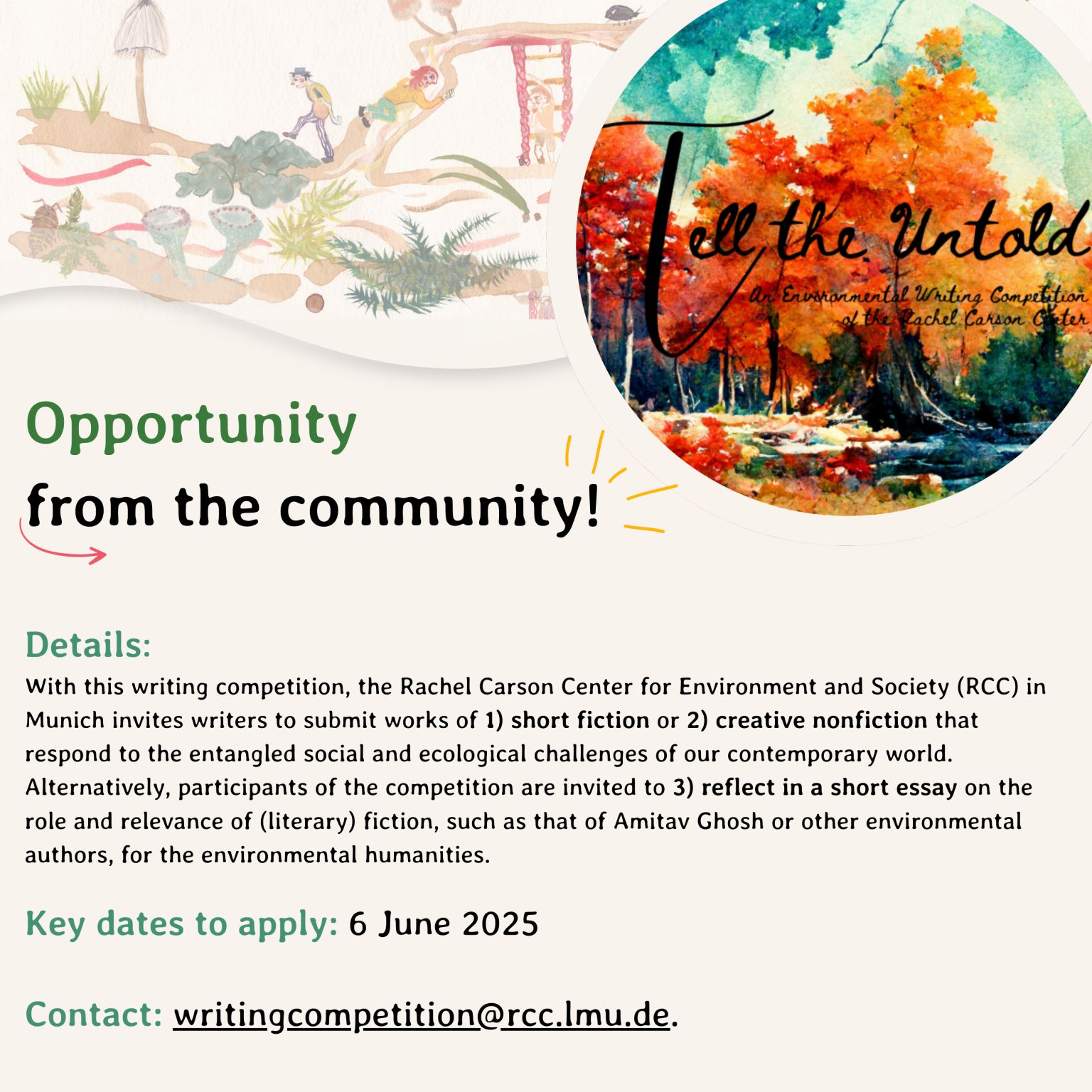 The Rachel Carson Center in Munich has launched an Environmental Writing Competition, TELL THE UNTOLD!