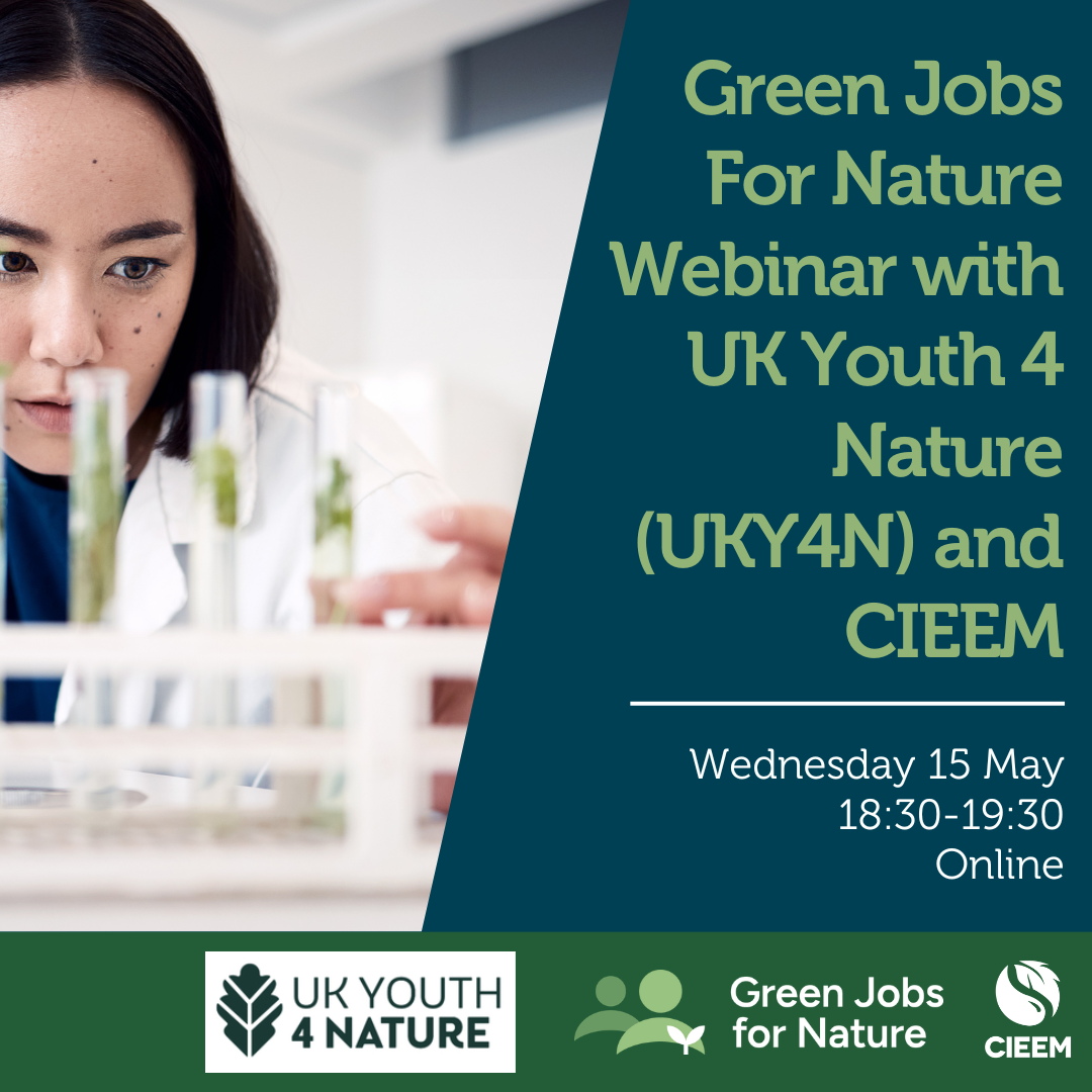 Just wanted to share a free Green Jobs for Nature webinar UK Youth for Nature are doing with CIEEM - next Wednesday at 6:30PM. The event is aimed at young people who are interested in a career that helps to restore nature and meet climate targets in the UK, and will provide an introduction to a range of nature-based roles.
