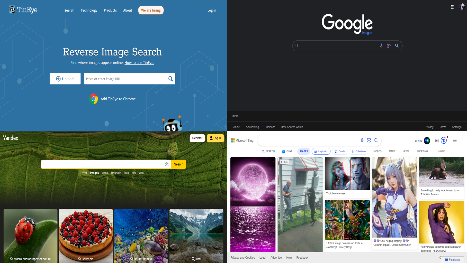What is Reverse Image Search: Reverse Image Search is a technology that is used to find similar images on the internet by using an image as a query instead of text or key words. When an image is uploaded or a link to an image is provided on the Reverse Image Search Tool, it analyzes visual elements of the image like its texture, pattern, colour, shape etc. to identify similar images or pages that may contain matching images on the web. Google Images (https://images.google.com/), TinEye (https://tineye.com/), Bing Images (https://www.bing.com/images/feed), Yandex Images (https://yandex.com/images/) etc. are some examples of Tools for reverse image search.