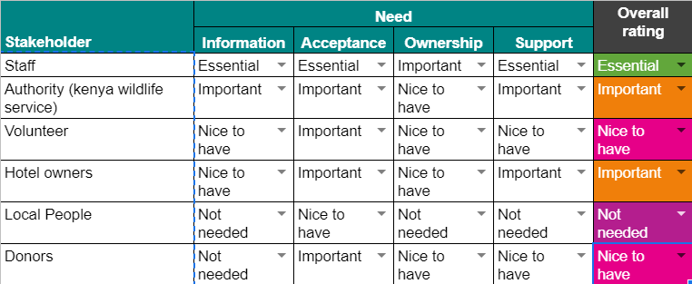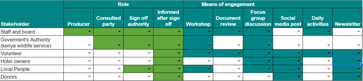 Hi everyone my example for engaging the stakeholders it's based on the Primate Conservation Center where I worked last year. I had some difficulties to assign the roles, so if you have some suggestion about it, let me know, it will be very helpfull for me! Thank you.