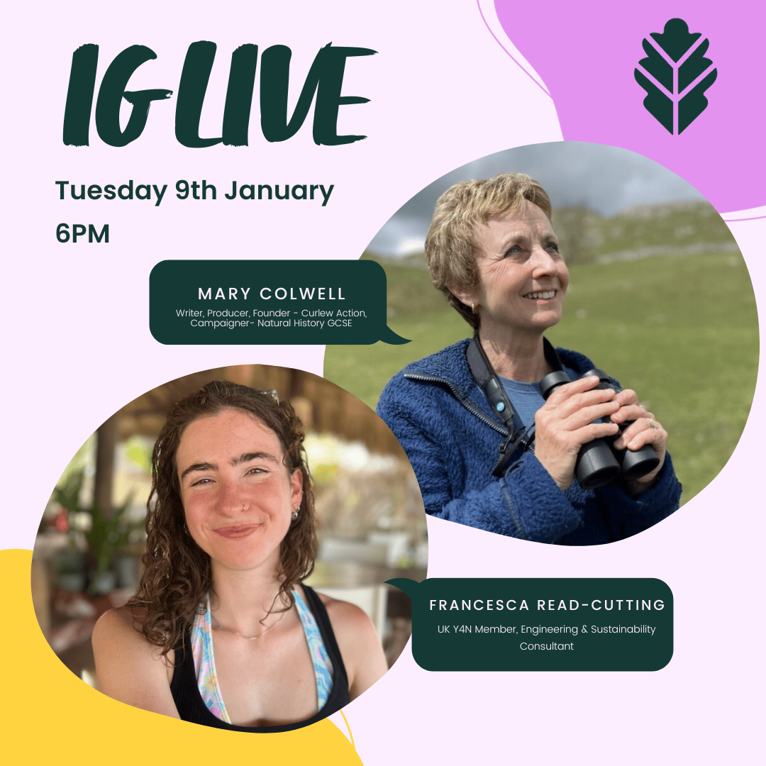 Amongst the many other hats I wear, I'm the Head of Communications for UK Youth for Nature - the leading UK youth movement calling for urgent action on the nature crisis. We run regular Instagram Lives with people who inspire us, with different members of our community of 16-35 year olds conducting the interviews. Our next one is tomorrow evening (9th of January) at 6pm with Mary Colwell - writer, wildlife film producer, founder of Curlew Action and campaigner for the Natural History GCSE - the course that's making all wish we could go back to school!