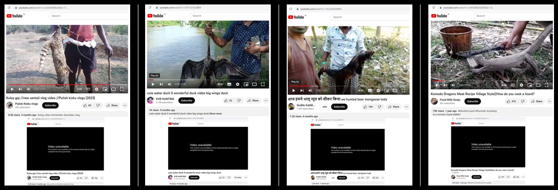 - Wildlife perpetrators may create and upload videos of poaching, hunting, cooking etc. on YouTube which may attract large number of viewers interested in such content of controversial and sensational nature.