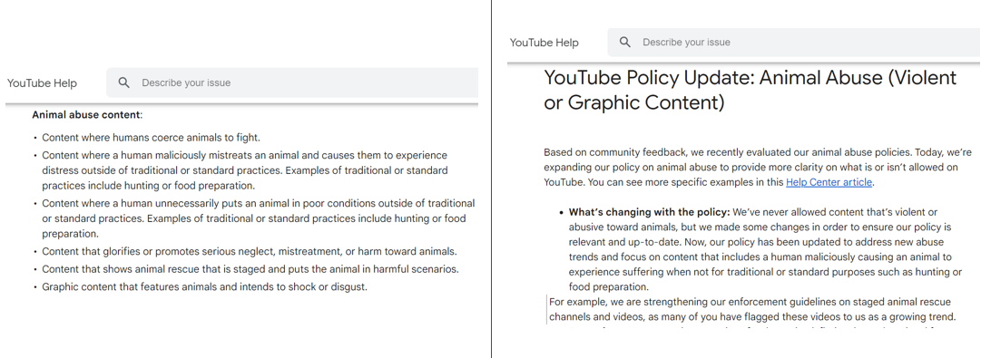 Now let me discuss about the "Violent and Graphic Content Policies" of YouTube as given below: (https://support.google.com/youtube/thread/115480979/youtube-policy-update-animal-abuse-violent-or-graphic-content?hl=en)