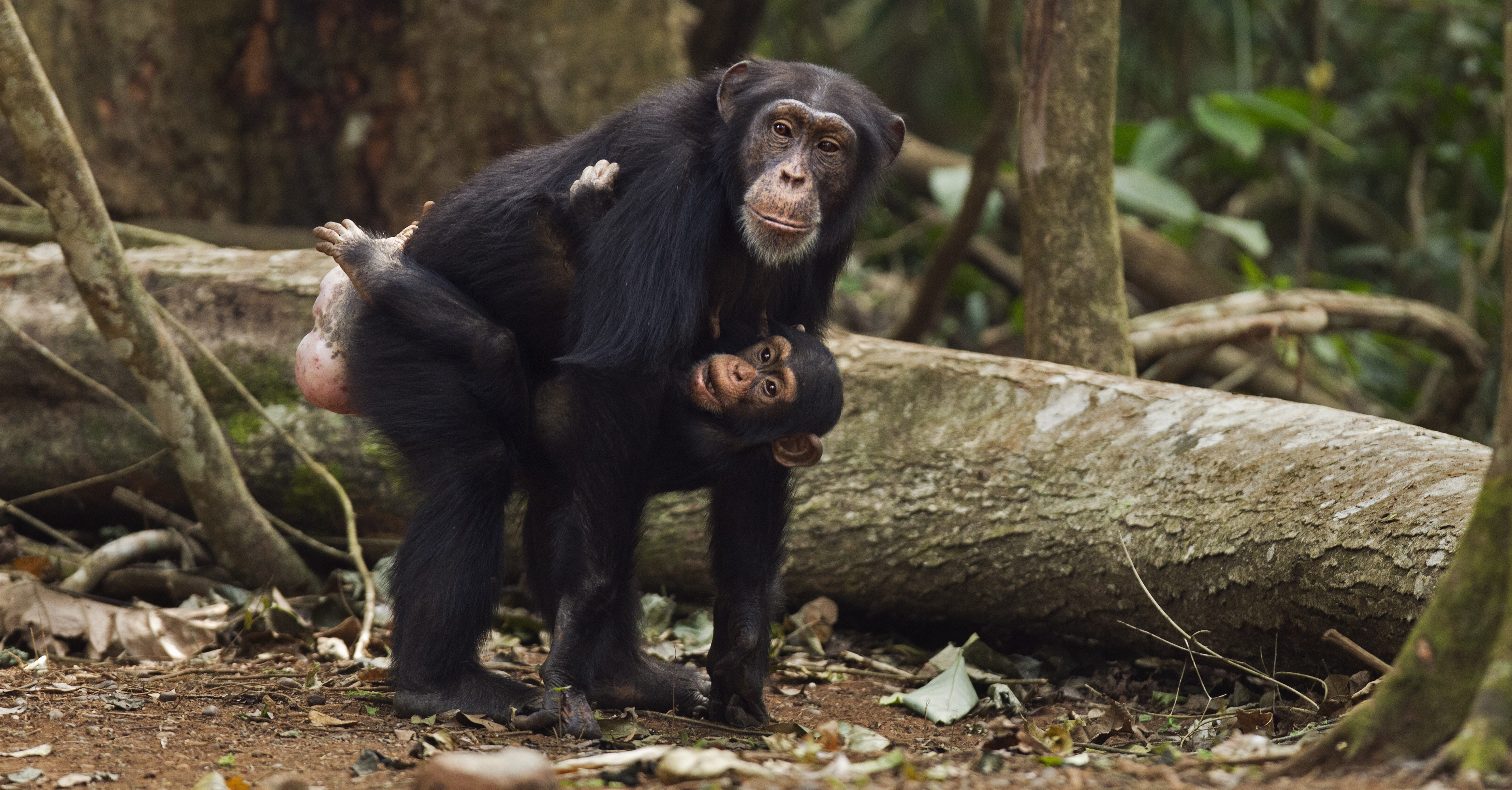 Anup Shah - Young female chimpanzee with her first infant at Bossou, Guinea, West Africa