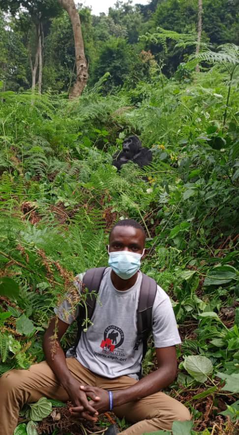 Ssali in the field with mountain gorillas