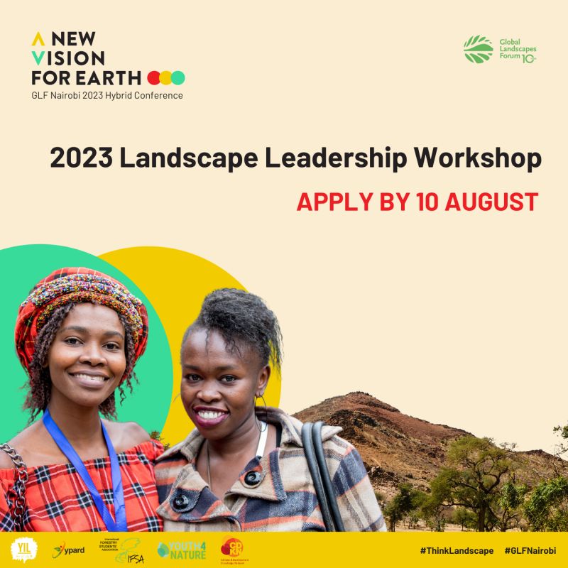 Apply now for a spot at the 2023 Landscape Leadership Workshop, and embark on a transformative journey towards landscape leadership. Co-designed by the Global Landscapes Forum, the Youth in Landscapes Initiative (YIL) and the Climate and Development Knowledge Network (CDKN), this workshop will take place in Nairobi, Kenya, ahead of the GLF Nairobi 2023 Hybrid Conference: A New Vision for Earth.