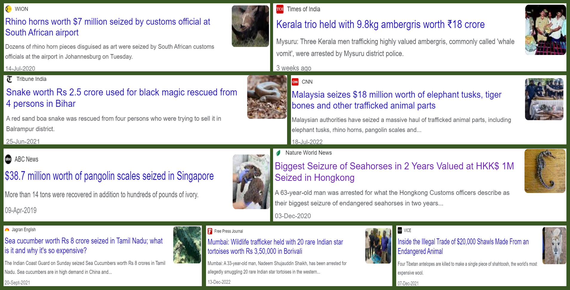 Just have a look at titles of some of news articles pertaining to wildlife seizures!!!