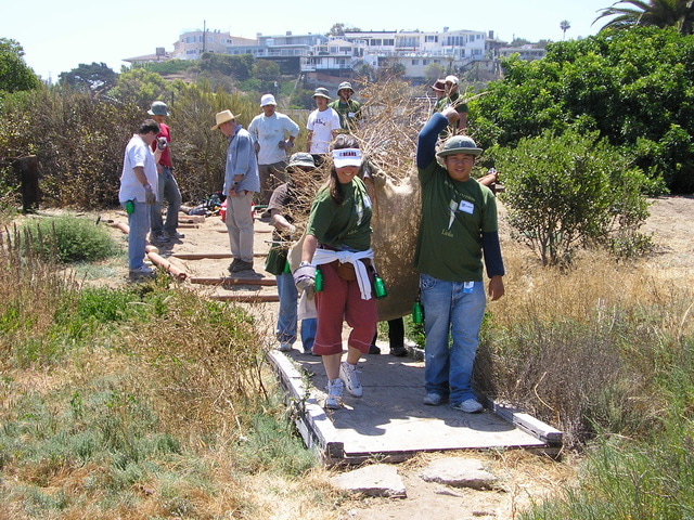 Image 1. It takes a lot of people to get the job done! Teams of volunteers clearing invasive vegetation. Photo credit: Kelly Rose and Friends of Ballona Wetlands