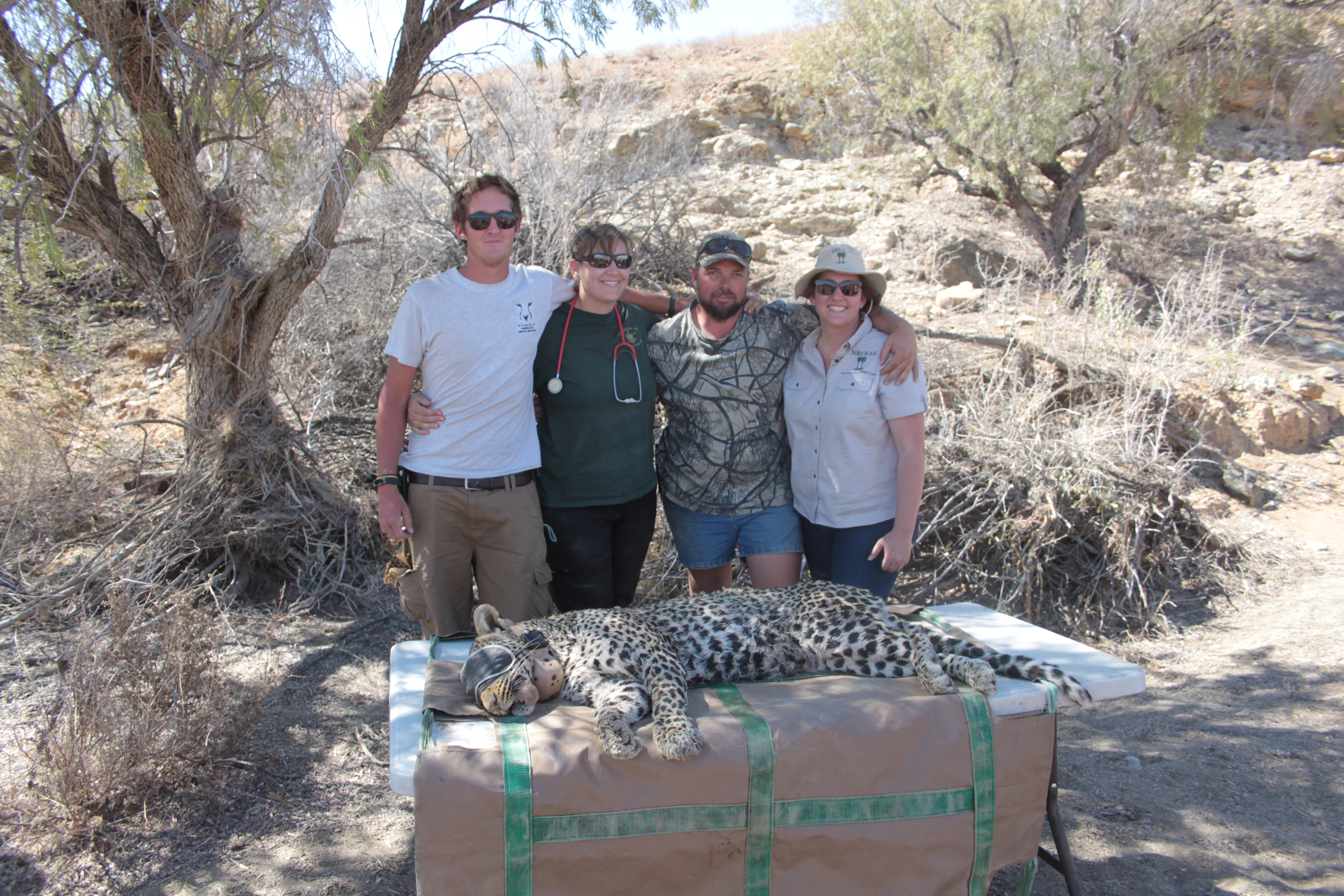 Image 2. Clinic volunteers assisting collar placement for tracking a leopard. Photo credit: Douglas Anderson