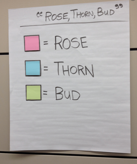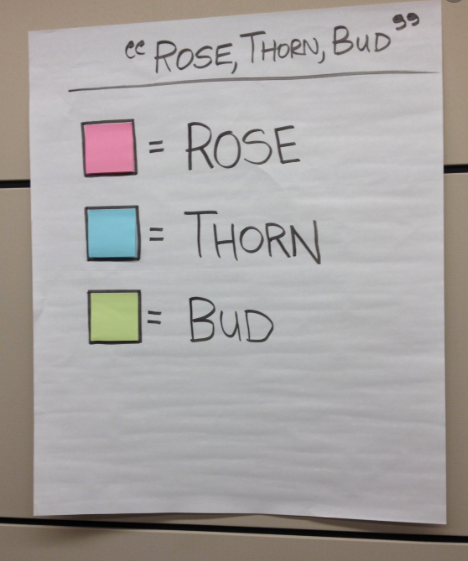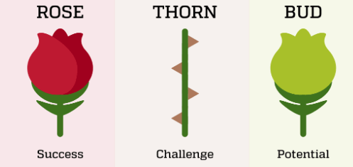 - Instead of everyone writing lessons into a lessons learnt log, I really like to use this activity called Rose, Bud, Thorn (learnt from Design thinking):