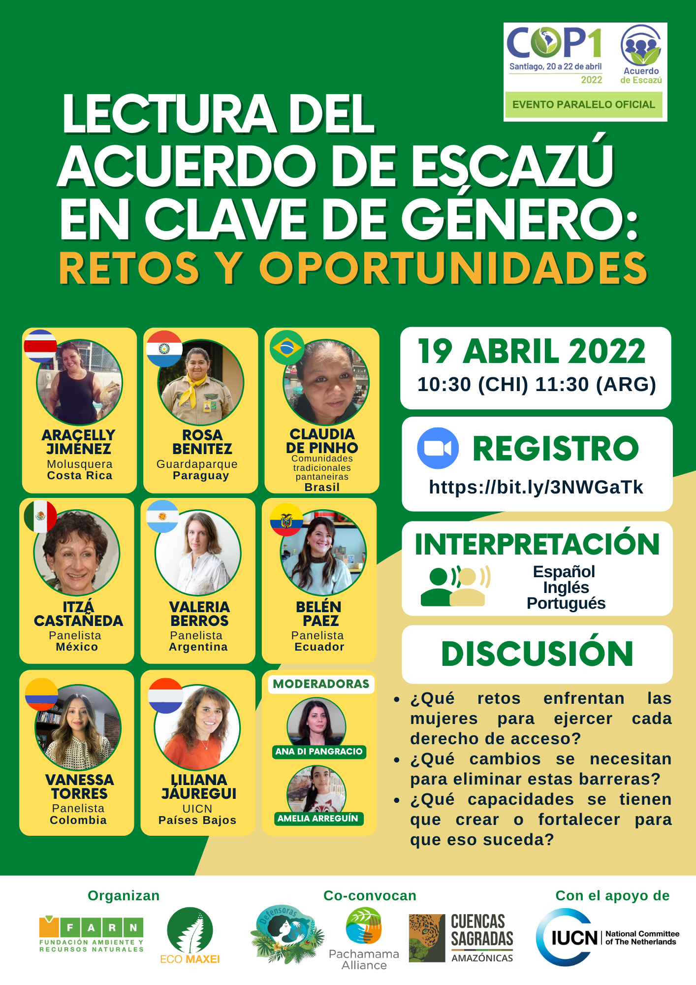 REPORTE/REPORT: https://farn.org.ar/evento-paralelo-oficial-cop-1-acuerdo-de-escazu-lectura-del-acuerdo-de-escazu-en-clave-de-genero-retos-y-oportunidades/