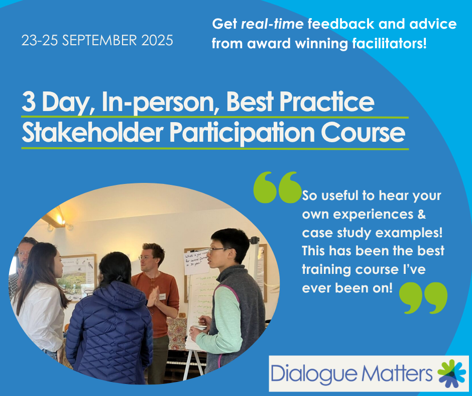 Discover all this and more at our 3-day Best Practice Stakeholder Participation course run by award winning participation experts. We have released new dates: 23-25 September 2025.