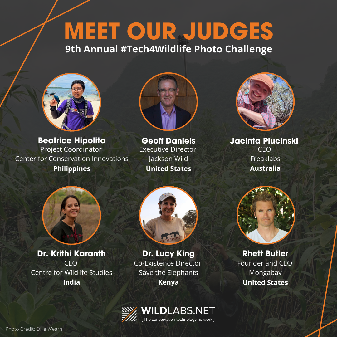 One of the goals of the Photo Challenge is to unite researchers, conservationists, innovators, communicators, and technology enthusiasts involved in conservation technology. With this in mind, we convened a judging panel of six members who bring experience across a diverse range of conservation sectors, including academia, tech, research, and media.