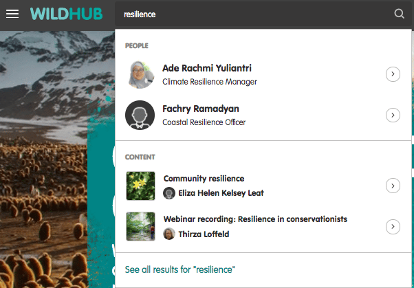 Updated search function on WildHub
