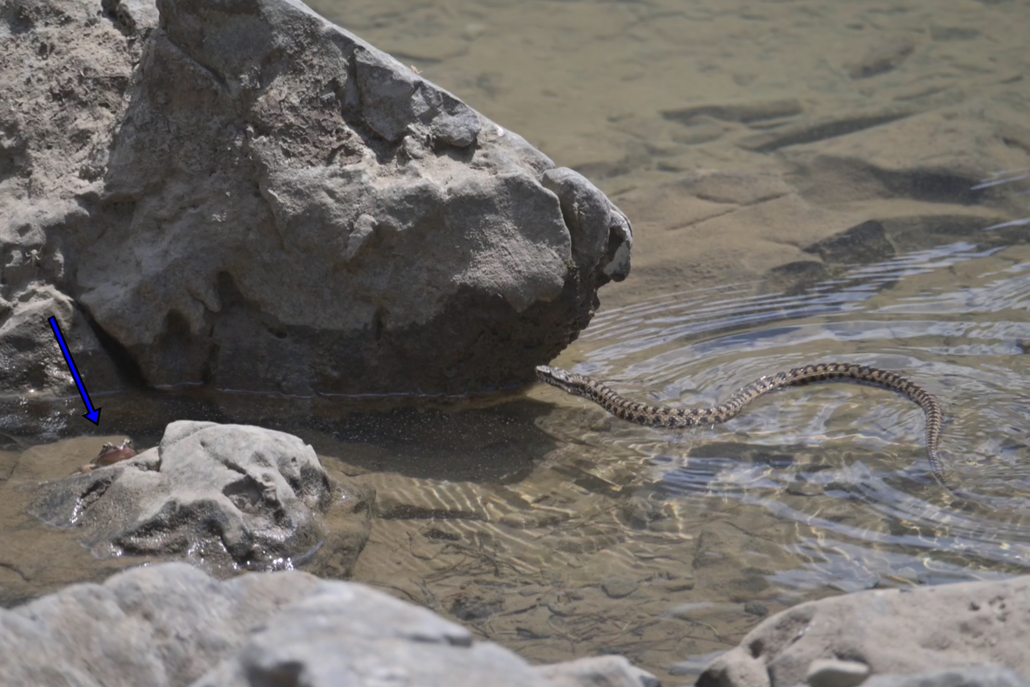 π How about a the Iberian Asp Viper, (Vipera aspis zinnikeri) that hunts frogs in the water? To devour their dead bodies moments later ?