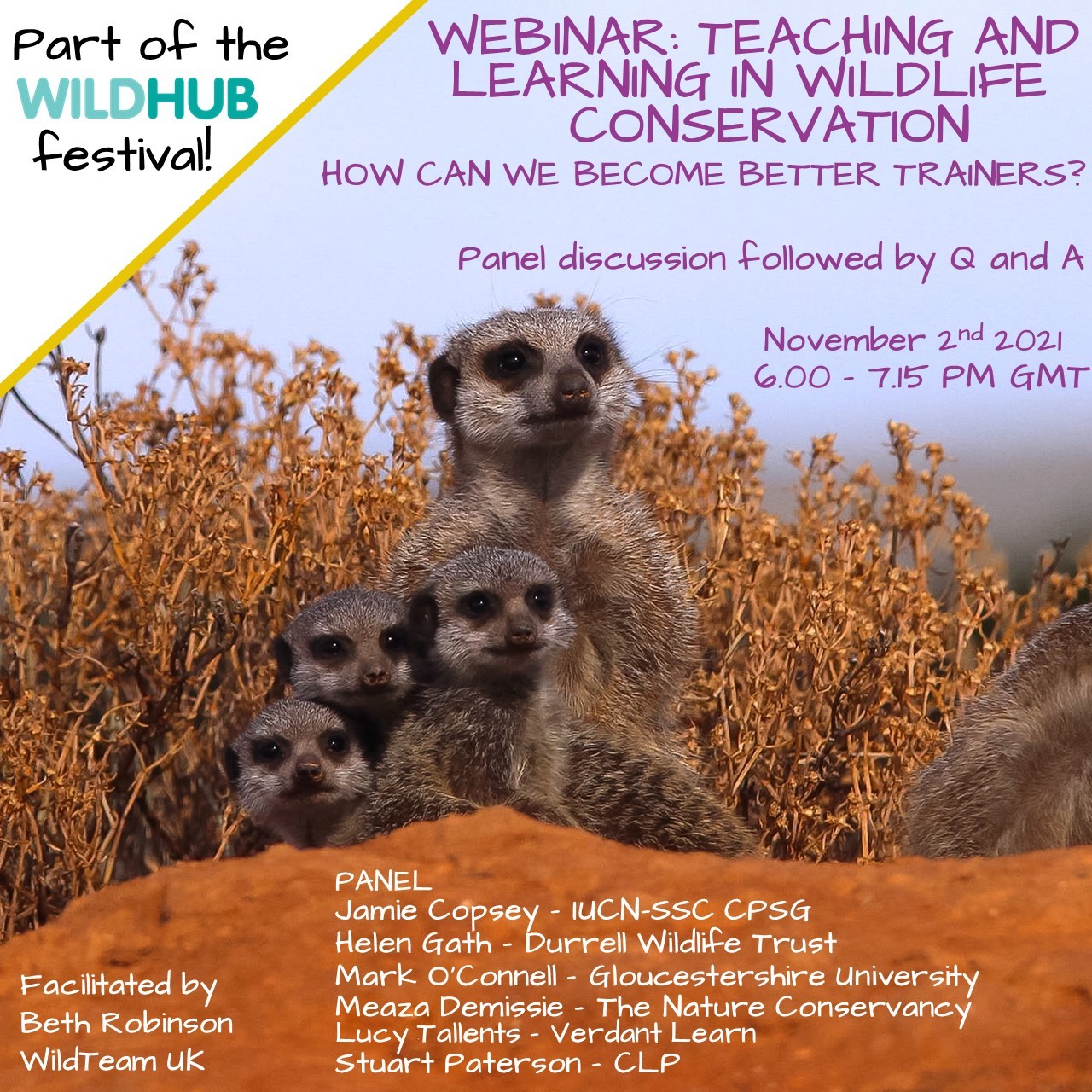 Other panellists included Lucy Tallents (Founder, VerdantLearn), Helen Gath (Conservation Training Officer, Durrell Conservation Academy), Stuart Paterson (Executive Manager, CLP - FFI), and Mark O'Connell (Senior Lecturer in Practical Ecology, University of Gloucestershire). Beth was assisted by Conservation Officer at the Scottish Wildlife Trust, Mary-Anne (MAC) Collis  and their participants were based in Canada, Cape Verde, Ecuador, Ireland, Kenya, Scotland, Sweden, UK, and US.