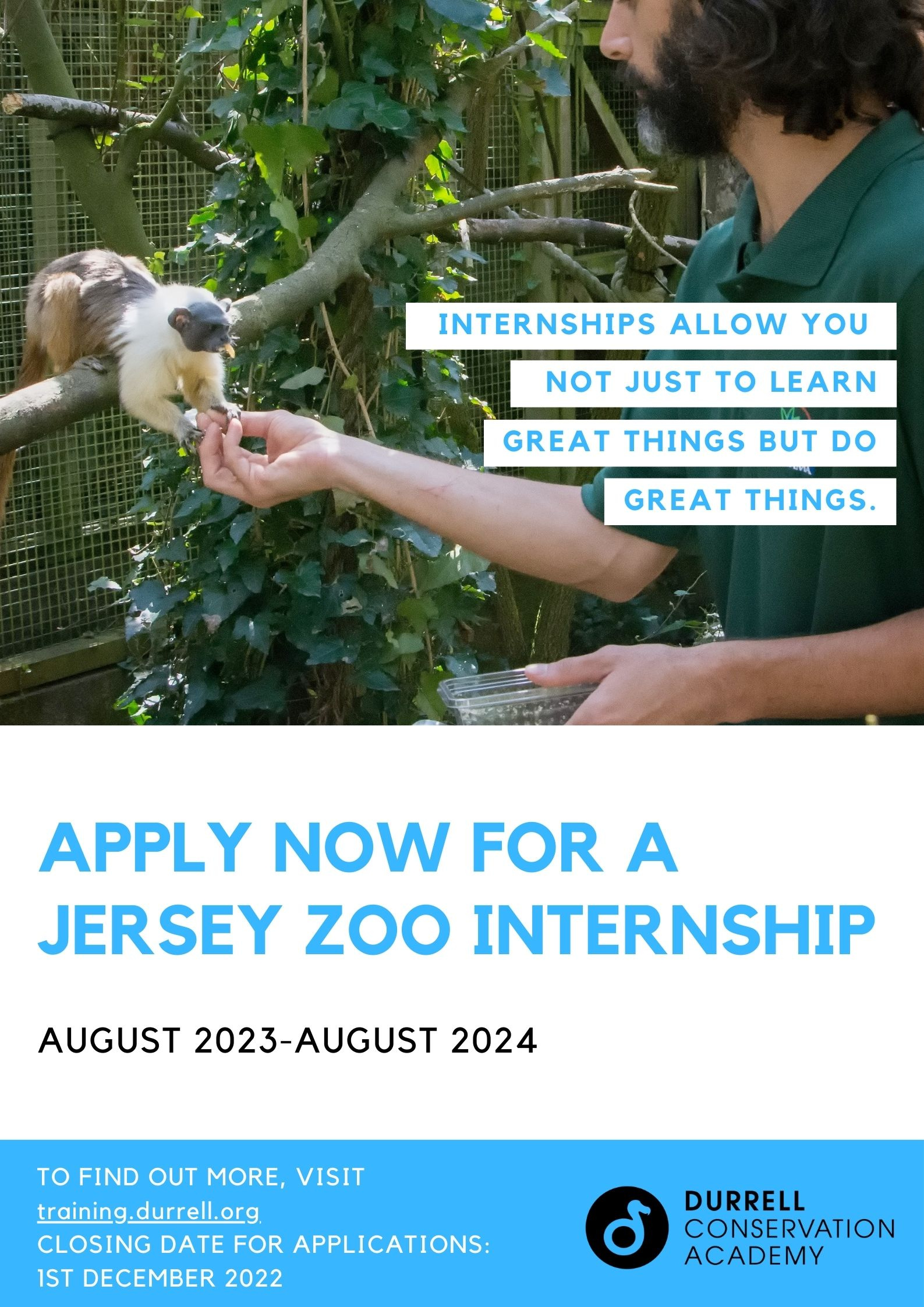 Durrell Wildlife Conservation Trust is delighted to be able to offer a number of 6-12 month training Internships at Jersey Zoo, which are designed primarily for university-level or early career conservationists wishing to develop their practical ''hands on' skills.