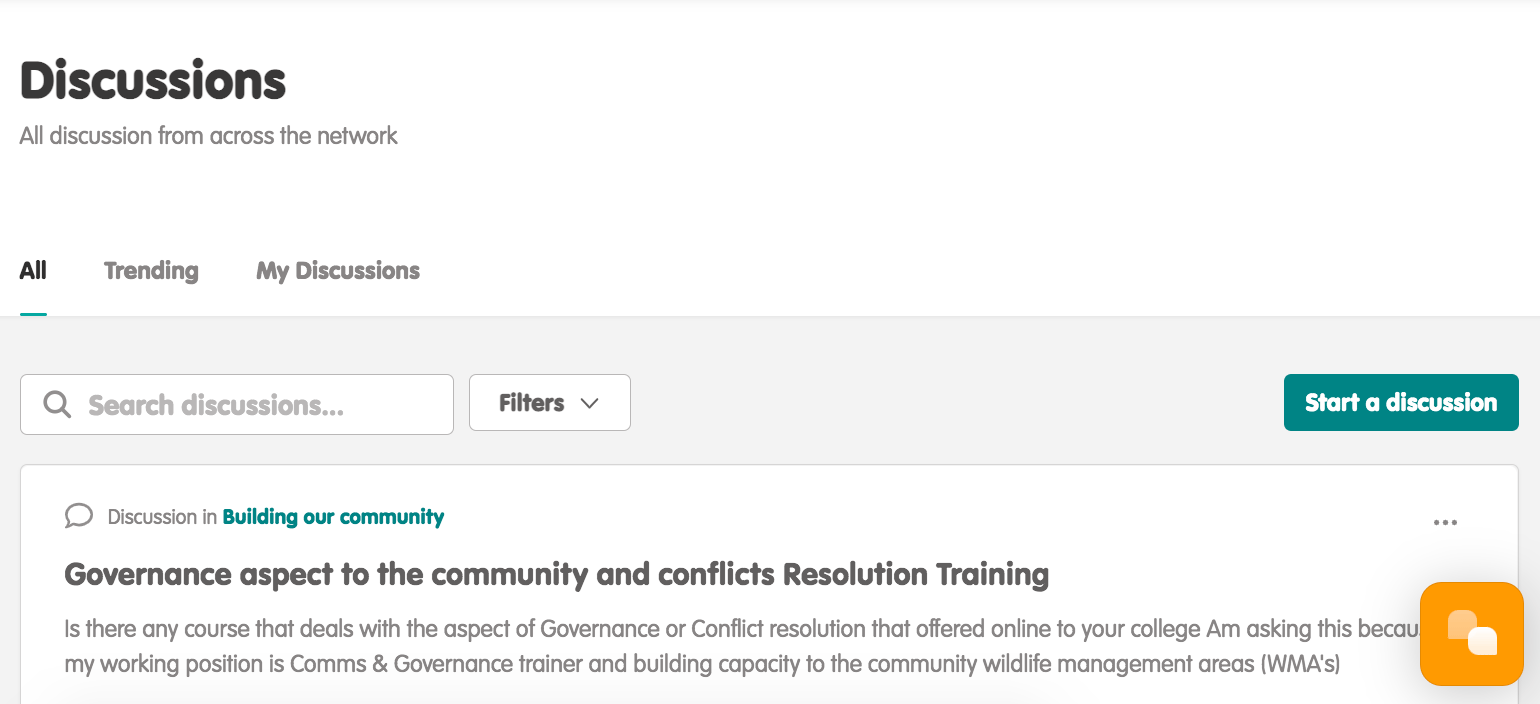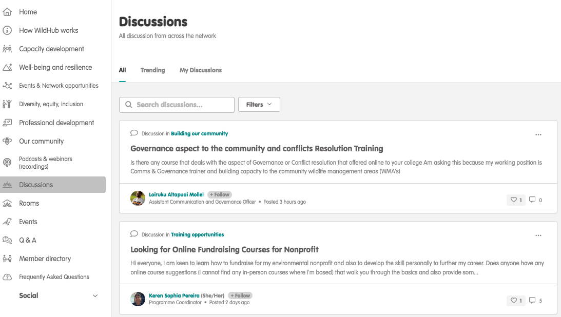 If you click on the "Trending" tab, discussions will be filtered based on the ones with the most responses at that point in time. Click on the "My Discussions" tab for an overview of the discussions that you yourself have created.